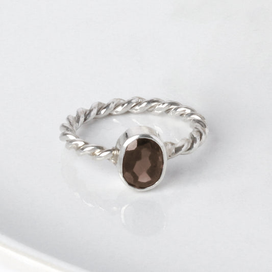 20% descuentoAnillo Bejuco de plata con cuarzo ahumado