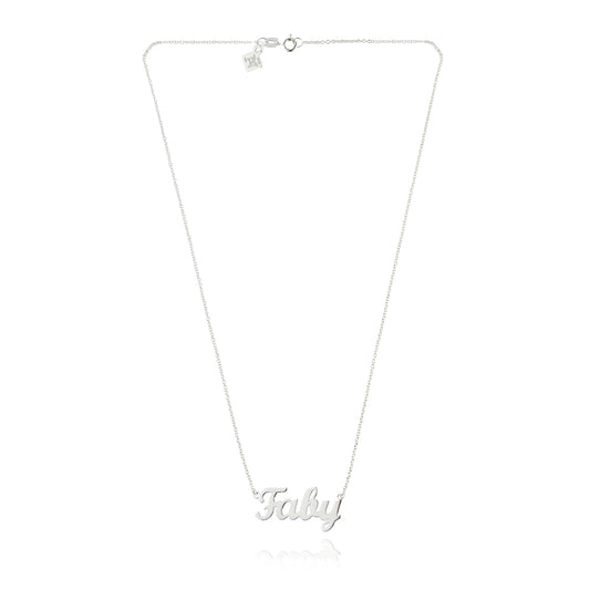 Collar nombre de plata en tipografía clásica