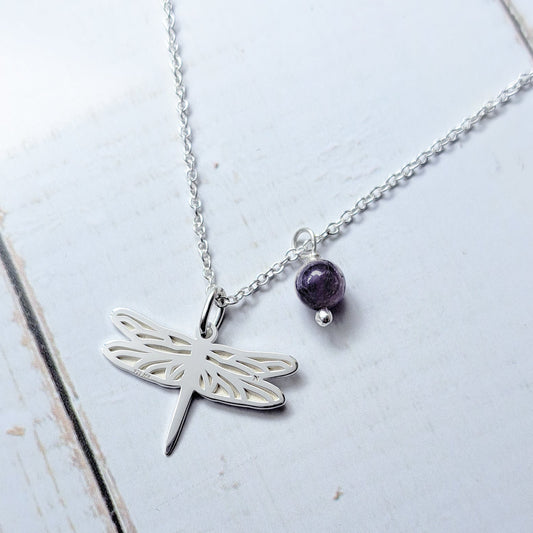 Dije Suerte Libélula de plata con Amatista