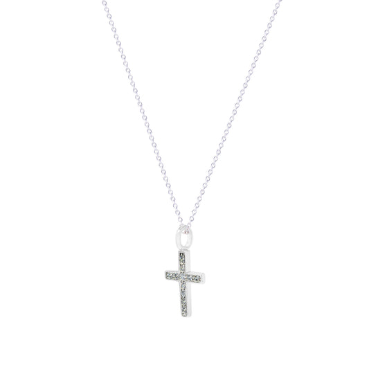 Dije cruz Destellos de plata con zirconias y cadena