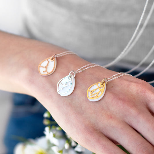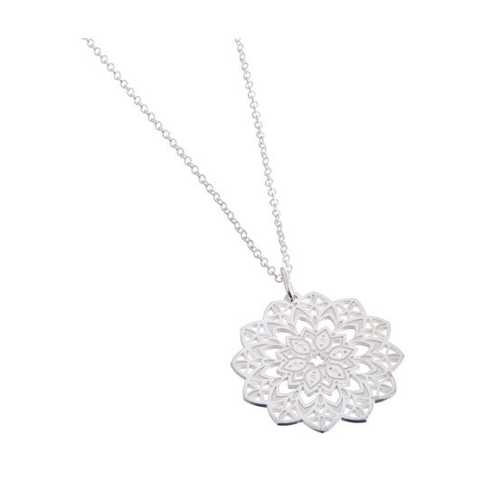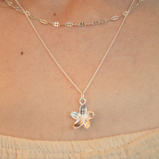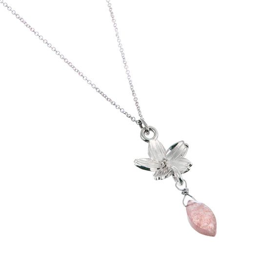 Dije Flor de Cerezo y cuarzo con cadena de plata