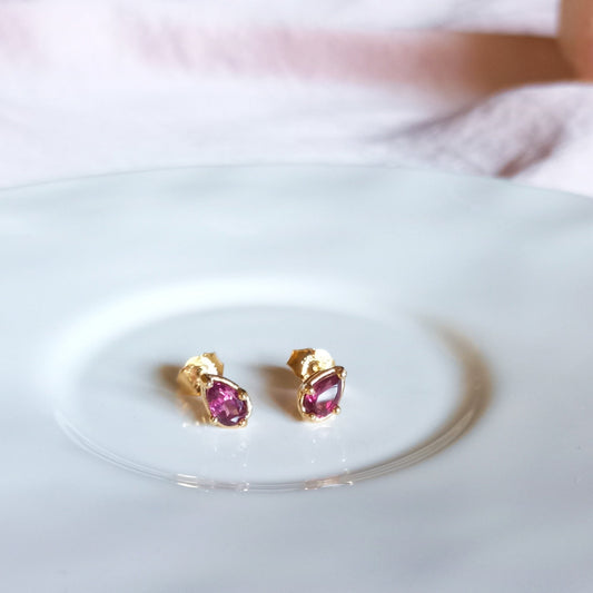 Broqueles Amor Natural de plata con baño de oro y rodolita