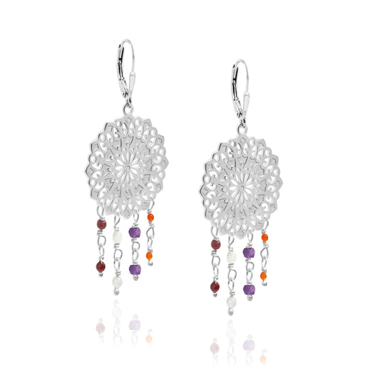 Sin duda una de las flores más bellas y alegres es la Gerbera, una planta que ilumina cualquier espacio en el que se encuentre. Este elemento es el que nos inspira para diseñar esta colorida colección, la cual creamos en plata y piedras naturales. Más allá de la forma de la flor y su gran significado, incorporamos en este diseño la belleza de los mandalas y la composición fractal y repetitiva que los distingue, para así dar vida a joyas únicas llenas de detalle.