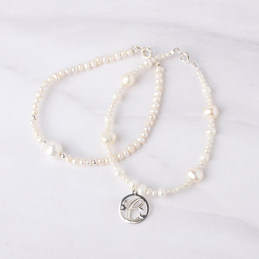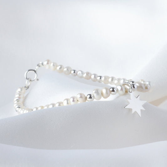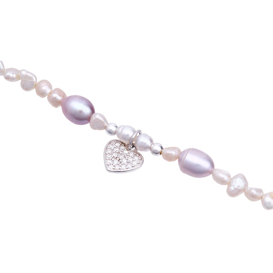 Pulsera Destellos de perlas y corazón de plata con zirconias