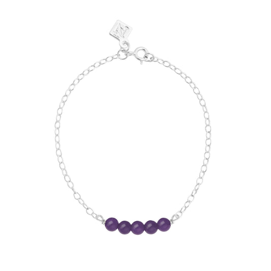 Pulsera Terra con amatistas al centro, calcedonia y perlas