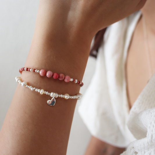 Pulsera Suerte Petunia de plata con piedras y perlas