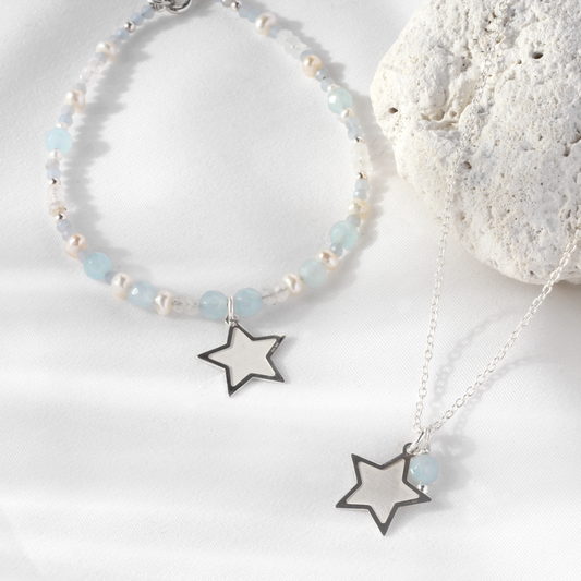 Pulsera Suerte Estrella de plata con piedras y perlas