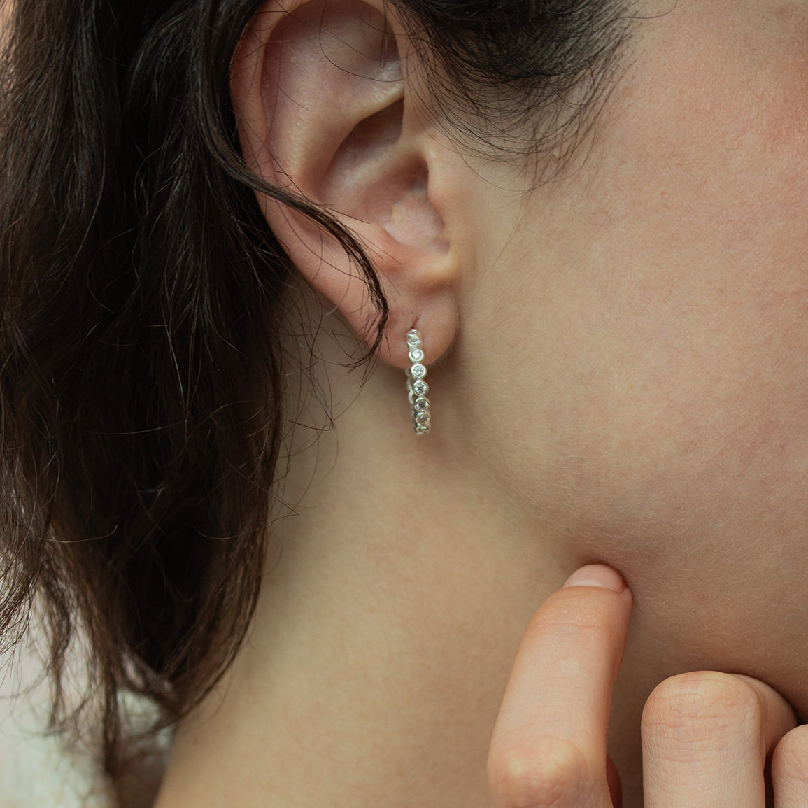 Destellos es la familia de joyas que tenemos con zirconias, una piedra creada en laboratorio con gran brillo. Al unir este elemento con la belleza de la plata, logramos alcanzar un conjunto de piezas preciosas que se convierten en el accesorio para combinar y realzar cualquier atuendo.