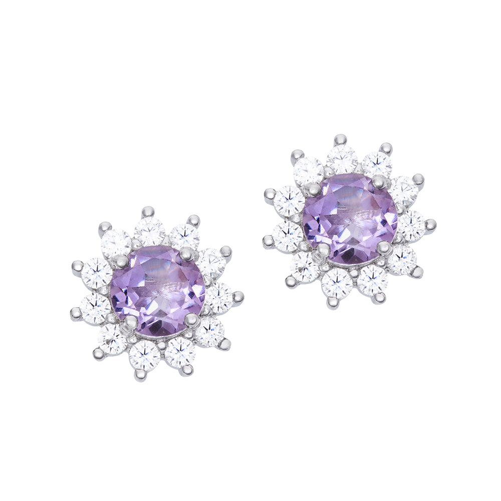 Broqueles Jazmín de plata con zirconias y amatista