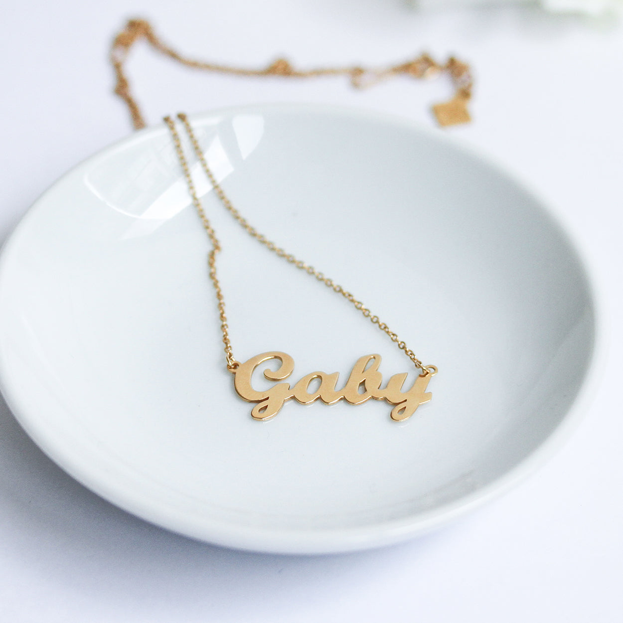 Collar nombre de plata en tipografía clásica
